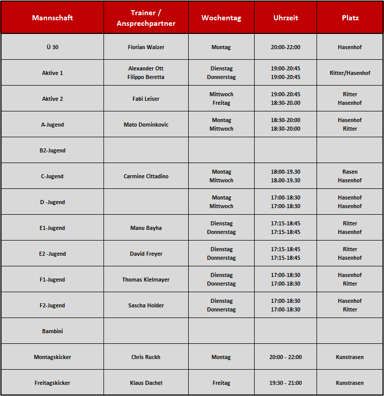 Trainingszeiten