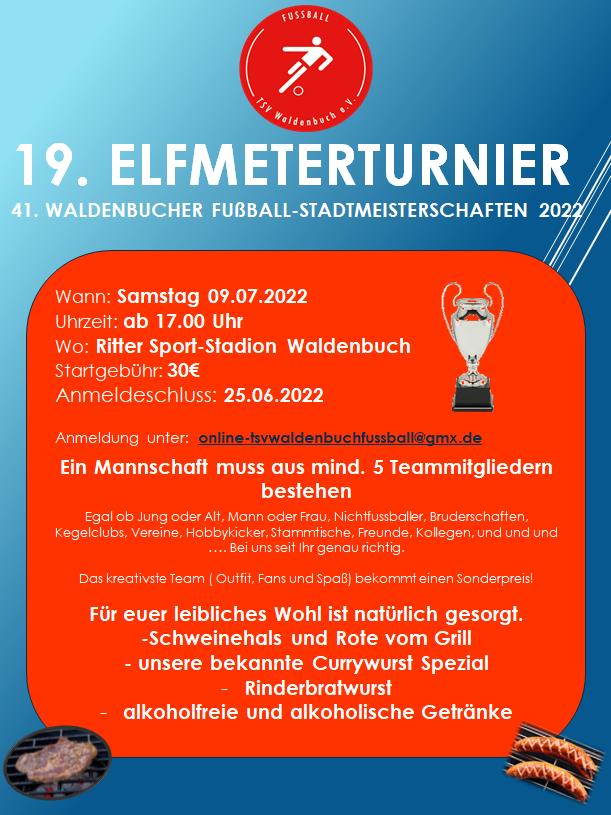 Unser Elfmeterturnier gibt es schon seit mehreren Jahren und ist der Nachfolger der Waldenbucher Stadtmeisterschaften. Dabei spielen Herren- , Damen- und Mixedmannschaften um die heißbegehrte Trophäe.