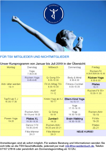 Wir freuen uns, viele Bekannte und auch neue Teilnehmer begrüßen zu können. Zur Übersicht unser Angebot von Montag bis Freitag.