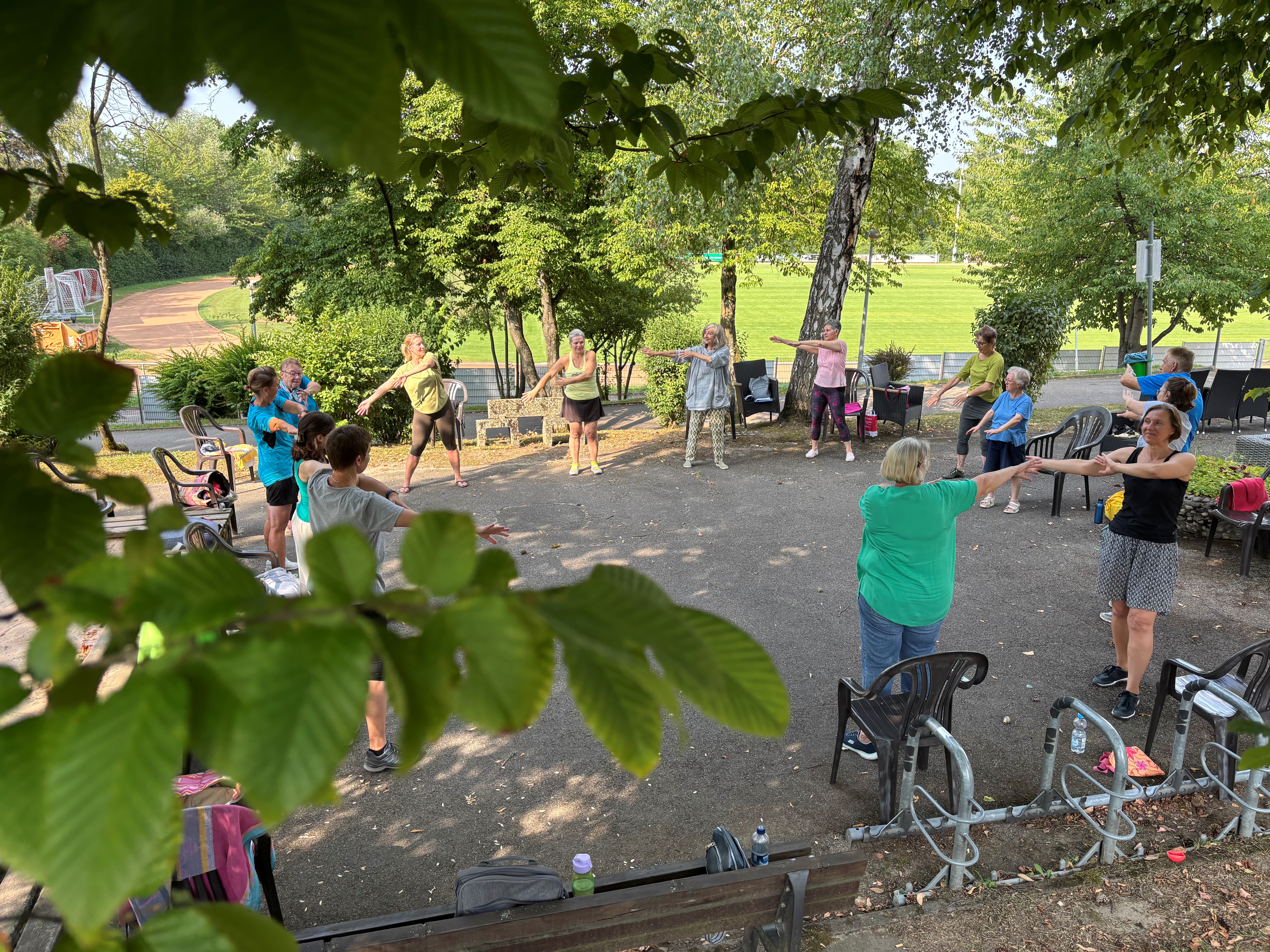 Im Bild – Qi Gong im Freien – bei bester Laune, perfektem Wetter genossen alle die tolle Energie!