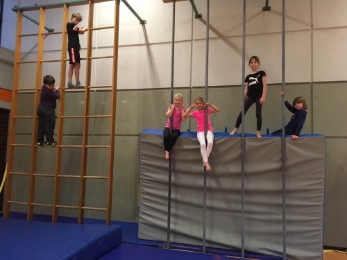 Durch die kleinere Gruppengröße können die Geräteaufbauten ganz anders genutzt werden, als das mit der großen Klasse im Schulsport möglich ist – das genießen die Kinder sichtlich.