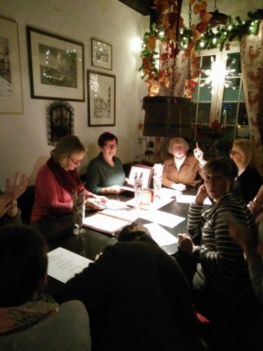 Da uns aber nicht nur die Erzählungen um Liebe, Tod, Verrat und Missverständnisse kalte Schauer über den Rücken jagten, sondern uns auch eisige Winterkälte frieren ließ, freuten wir uns umso mehr auf die anschließende Einkehr in die Weinstube “Viertelesschlotzer”.