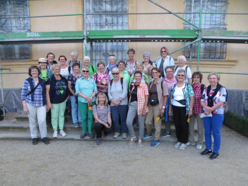 Schon gestern und auch am Samstag blieben wir nach dem Abendessen noch lange beisammen. Freude bereitete uns Edith mit ihrem Akkordeon, wir sangen und schunkelten und Ingrid hatte lustige Spiele vorbereitet. So kam auch das Lachen – das ja gesund ist – voll zum Zug! ![]() Strahlende Gesichter vor dem prächtigen Eingang zu Schloss Weissenstein. Am Sonntag dann Barock in seiner schönsten Form. Wir besuchten Schloss Weissenstein in Pommersfelden, das Anfang des 18. J. von Fürstbischof und Kurfürst Lothar Franz von Schönborn als private Sommerresidenz erbaut wurde. Nach einer interessanten Führung und kleiner Kaffeepause ging’s weiter. Wir hatten noch genügend Zeit, in Volkach das Kirchlein Maria im Weingarten zu besuchen, um Tilman Riemenschneiders letztes Marienbildnis, die Madonna im Rosenkranz, zu sehen. Zum Abschluss des Tages kehrten wir heimatnah in Gronau ein. So, wie wir an allen drei Tagen waren: fröhlich und gut gelaunt – nicht nur wegen des sonnigen Wetters – so beendeten wir unseren Ausflug. (Bericht und Fotos Erika Nogger) |