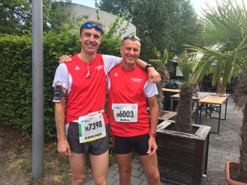 Bei hochsommerlichen Temperaturen erreichte Matthias mit einer Zeit von 01:41:39 Stunden den 89. Platz und Wolfram mit einer Zeit 01:50:56 Stunden den 187. Platz in ihrer Altersklasse M 50.