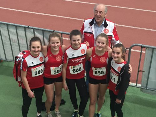 Unsere U16 Mädels freuen sich, dass sie in diesem Jahr endlich mal Staffel zusammen laufen dürfen. Das war an diesem Tag auch ihr bestes Ergebnis. 6.Platz mit 56,79sec über 4x100m. Ansonsten starteten die Mädels über 60m, Kugel und 800m. Mit dabei waren Lisa und Laura Eckhardt (W15), Timea Czopf (W14), Lilly Wagner(W14) und Julia Rothe(W14).