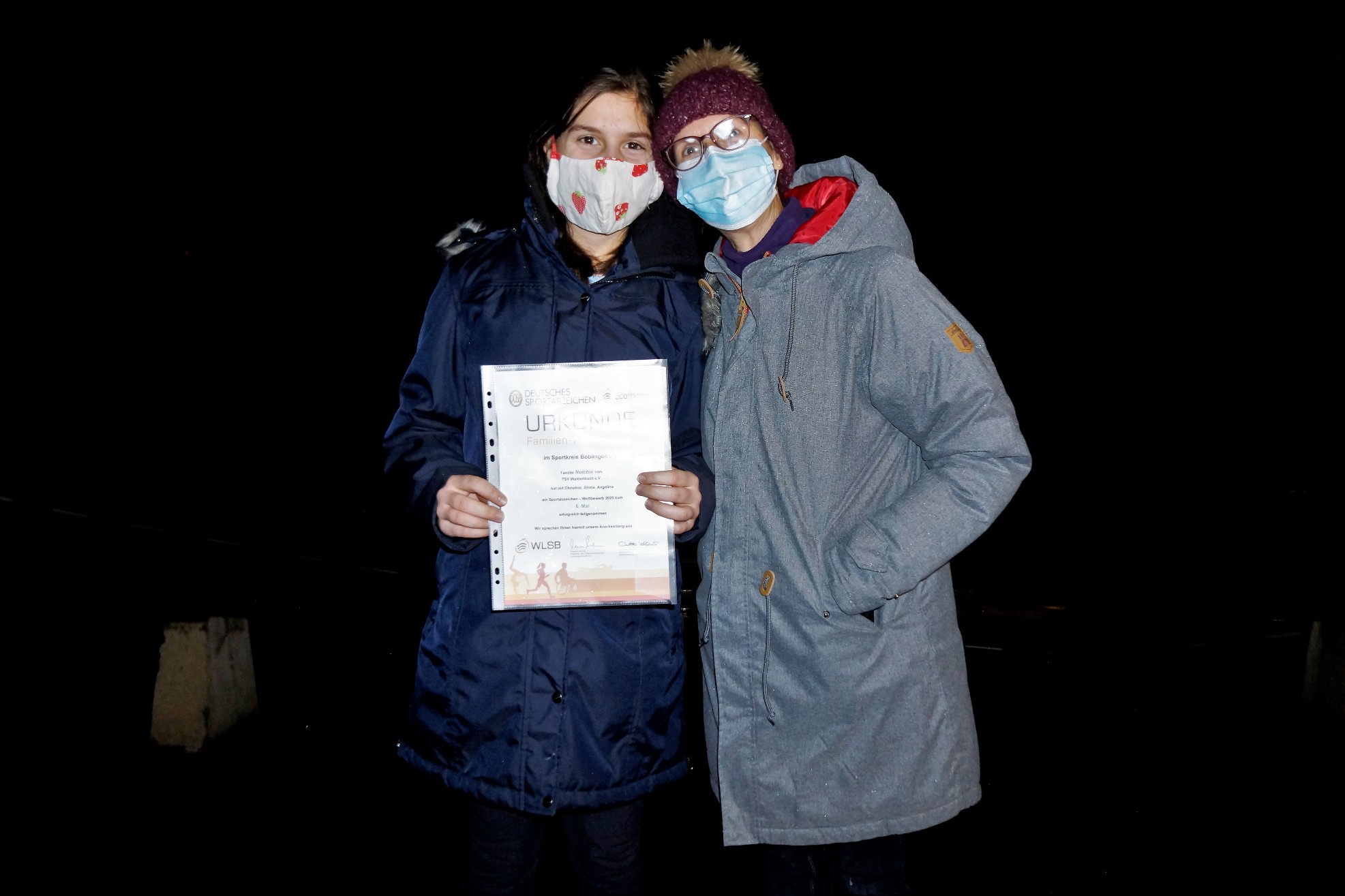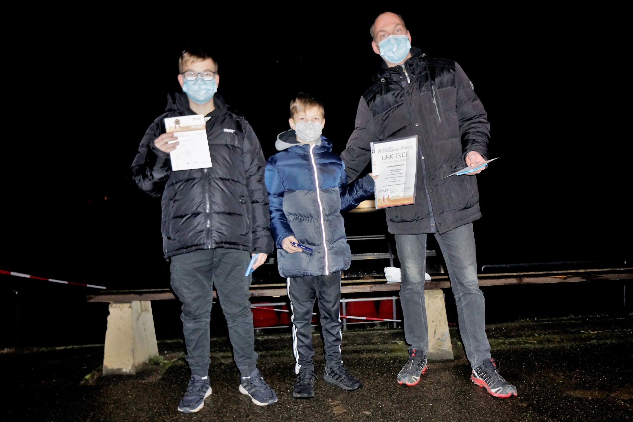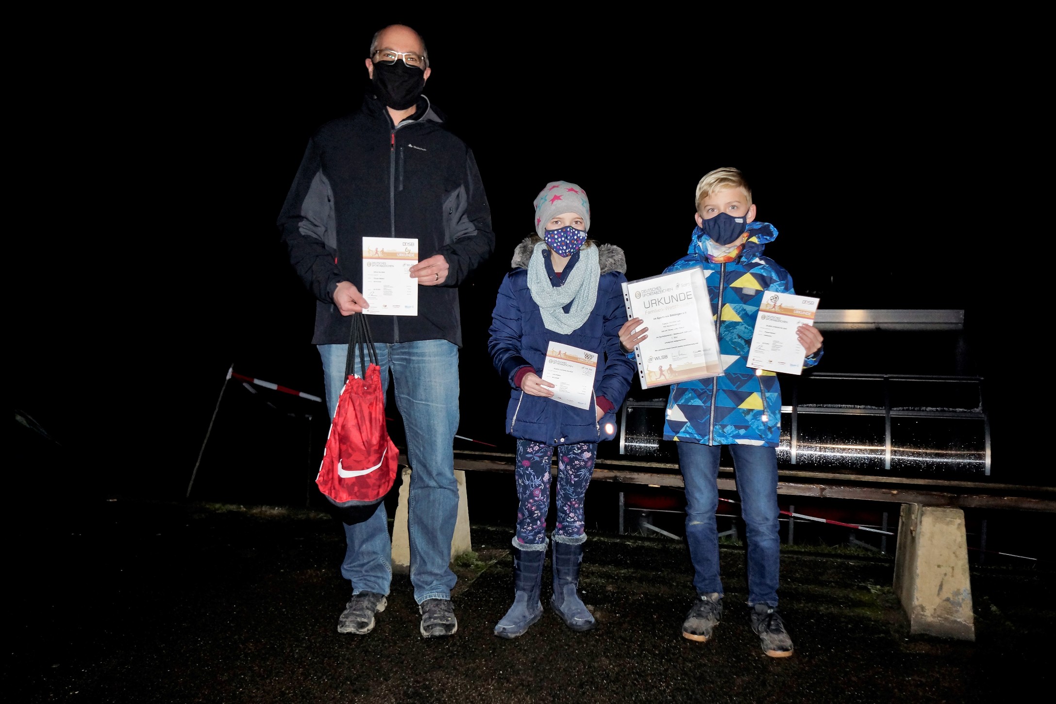 Besondere Zeiten erfordern dann auch besondere Maßnahmen. Nachdem 2 Termine wegen dem Versammlungsverbot zurückgenommen werden mussten, fand die Urkundenausgabe „ohne Gruppenbildung“ unter freiem Himmel im Stadion statt.