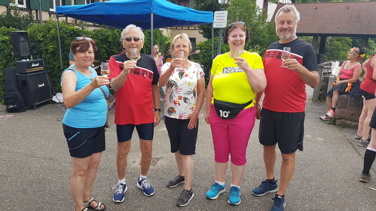 Am Sonntag gehörten den Sportler*innen dann Molsheim und die umliegenden kleinen Orte. Über 5.700 Sportler hatten sich für die verschiedenen Wettbewerbe angemeldet. Ein Teil vom LaufTeam hatte sich fürs Walken entschieden und genoss so die Verpflegungsstationen, die teils auch mit Wein bestückt waren.