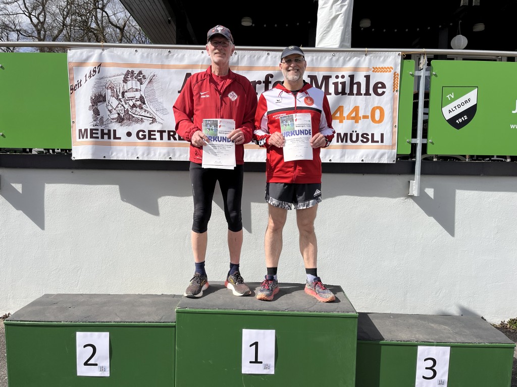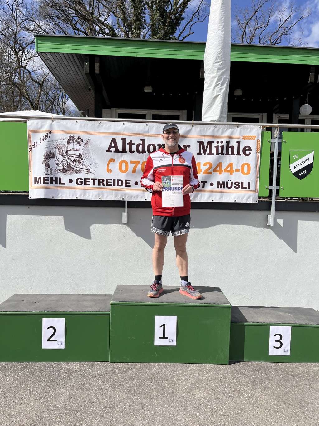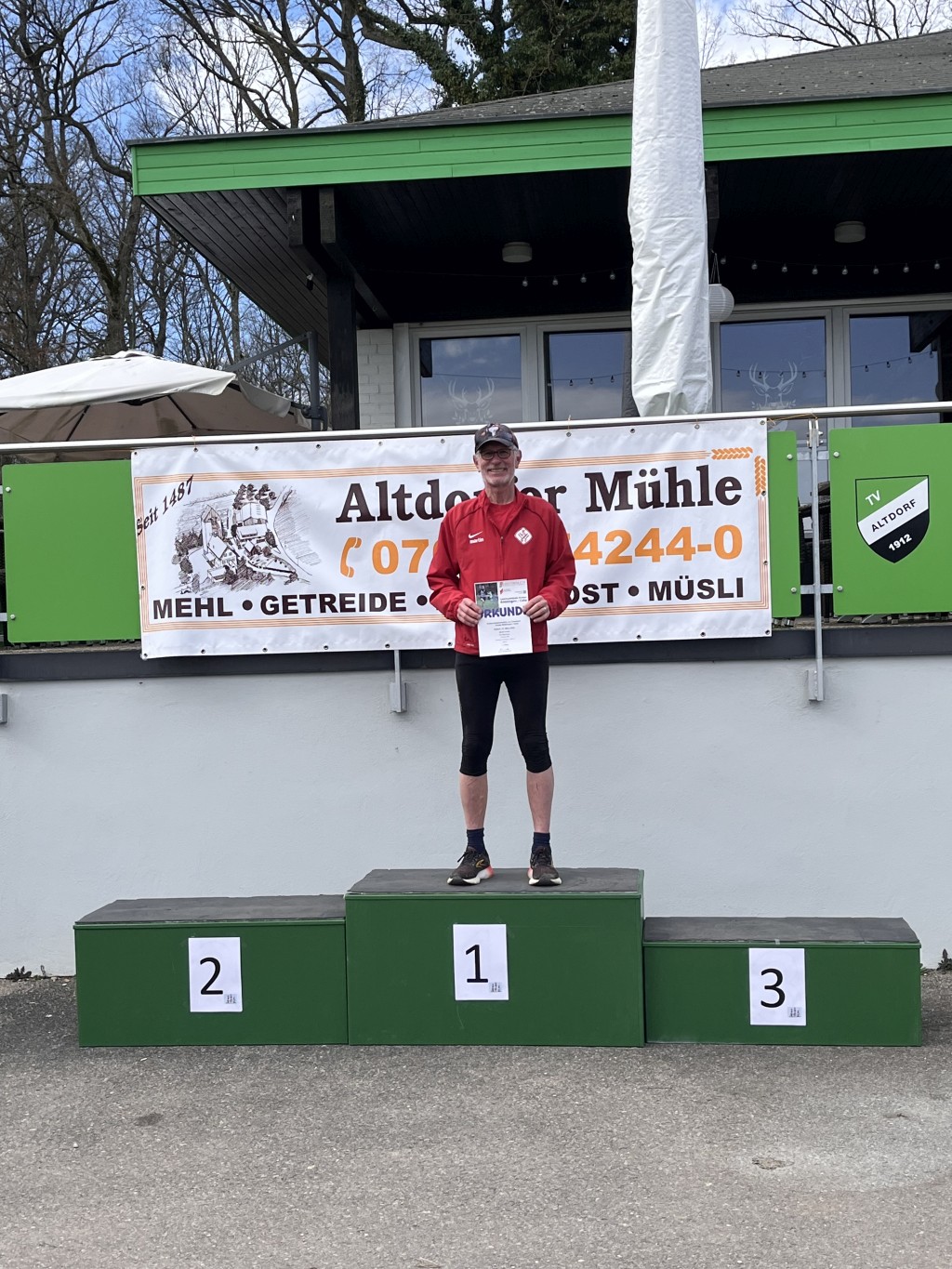 Bestes Laufwetter für unsere 7 Athlet*innen letzten Samstag, den 22. März auf Waldwegen und Trampelpfaden beim Sportgelände in Altdorf. Den Start machten Martin Freyer M65/1.Platz, Werner Dax M60/2.Platz und Oliver Hörig M55/1.Platz über 5,6 km. Nicht nur in den Ak Platzierungen, sondern auch als Team ganz oben auf dem Treppchen. Für die Jüngsten U8 – U12 eine kleine Runde von 900m. Hier wurde unsere jüngste, Elise Schultheiß W9 mit Platz 6 belohnt. Ihre Schwester Theresa Schultheiß W10 lief die Strecke in einer Topzeit von 3.35 min auf Platz 1. Dominik Zimmermann U16/M14 und Daniel Kronewitter U20/M18 durften die 1,8km zusammen genießen. Für Dominik die Bronze und für Daniel die Silbermedaille. Gratulation an alle!