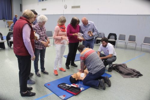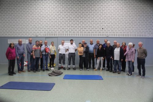 Die beiden Fachmänner im Bereich Erste Hilfe schulten unsere Herzsportler für den Notfall. Einen kompletten Erste Hilfe Kurs kann dieser Abend sicher nicht ersetzen, dennoch konnten ganz bestimmt viele Hemmungen und Ängste genommen werden.