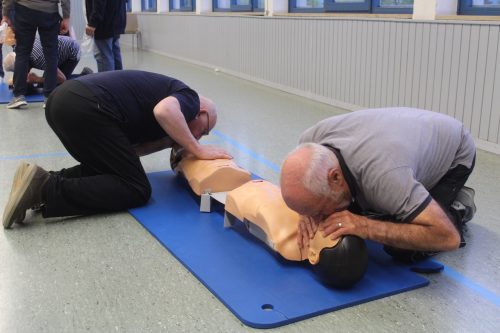 Unsere Herzsportler kamen dem Angebot der etwas anderen Bewegung gerne nach und legten auch selbst Hand an um die Reanimation an den DRK-Puppen auszuprobieren.