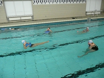 Nach dem Mittagessen trafen wir uns im Seminarraum zur Analyse der Schwimmstile und