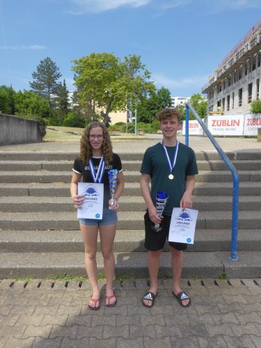Nach einer kleinen Verschnaufpause ging es in Runde 2 der Wettkämpfe. Begonnen haben wieder die Kleinsten. Diesmal schwammen jede Menge Gegenstände im Wasser, die es galt an den Beckenrand zu bringen. Quasi Aufräumen mit Spaßfaktor. Die Jungen haben auch das toll gemeistert. Als Belohnung gab es für jeden eine Medaille und eine Wasserpistole. Die Wasserpistolen kamen, nach dezenter Aufforderung von Lena und zur Freude der Eltern, direkt zum Einsatz. Danach ging es wieder mit den Jahrgängen 2015 und jünger weiter, diesmal mit 25m Freistil. Gefolgt von den Jahrgängen 2013 / 2014 und 2010 bis 2012, die 50m Freistil schwammen. Freistil heißt bei uns, dass alle Lagen möglich sind. Bei den Mädchen der Jahrgänge 2009 und älter war dann leider ein erster Ausfall zu verzeichnen. Noch zu dritt ging es darum, wer Vereinsmeisterin 2023 wird. Nach einer beeindruckenden Leistung auf 100m Freistil gewann mit klarem Vorsprung die Jüngste im Feld der Starterinnen, Alix Zoller.