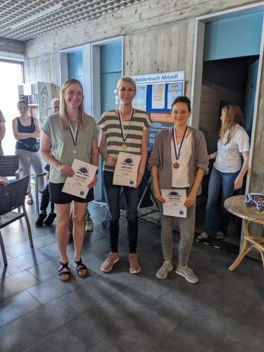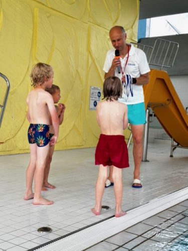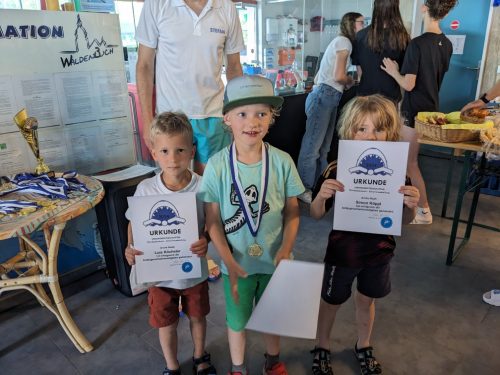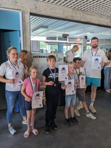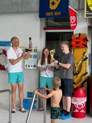 Während die Zeiten ausgewertet, die Platzierungen ermittelt und die Urkunden gedruckt wurden, durften alle Teilnehmer im Schwimmbecken spielen oder sich mit Kuchen stärken. Es folgte die Siegerehrung.