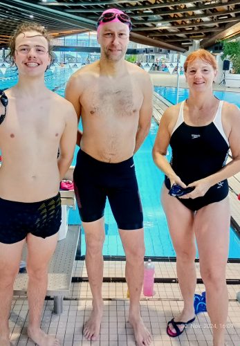 Am 30.11.24 war die Schwimmabteilung des TSV Waldenbuch bei der 100 x 100 m Challenge im Sindelfinger Badezentrum dabei, vertreten durch Sylvia Kruse, Justus Röhr und Stefan Hirsch. Dabei werden 10 km geschwommen, unterteilt in hundert 100-Meter-Abschnitte. Jeder dieser 100-Meter-Abschnitte muss in der gleichen vorgegebenen Zeit geschwommen werden. Je nach individuellem Trainingszustand konnte man dabei zwischen den Abgangszeiten 2:45 min, 2:30 min, 2:15 min und 2:00 min je 100 Meter wählen. Es geht also darum, die 10 km mit einer konstant hohen Geschwindigkeit und nur ganz kurzen Pausen zwischen den jeweils 100 Metern zu schaffen. Denn sobald die Abgangszeit abgelaufen ist, beginnen die nächsten 100 m. Alle drei TSVler haben die vollen 10 km mit ihrer gewählten Abgangszeit durchgehalten. Herzlichen Glückwunsch zu dieser tollen Leistung!