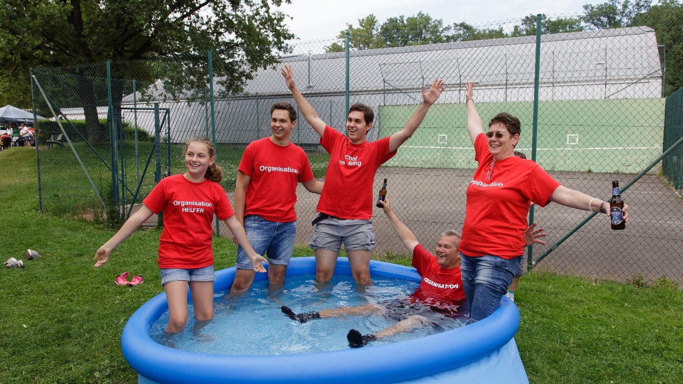 Samstag und Sonntag Sonnenschein und hochklassige, sehr sehenswerte Spiele, und für Kaffee und Kuchen war rund um das „Team Ellermann“ auch gesorgt. Leider kann man ja als Zuschauer nicht überall gleichzeitig sein. Zur Siegerehrung hat Flowers und Art – Luiz Gomes (erstmalig dabei) die Siegersträuße erstellt, welche dann in stimmungsvoller Runde überreicht wurden. Hiernach ging die Turnierleitung in einem aufgebauten Pool baden.