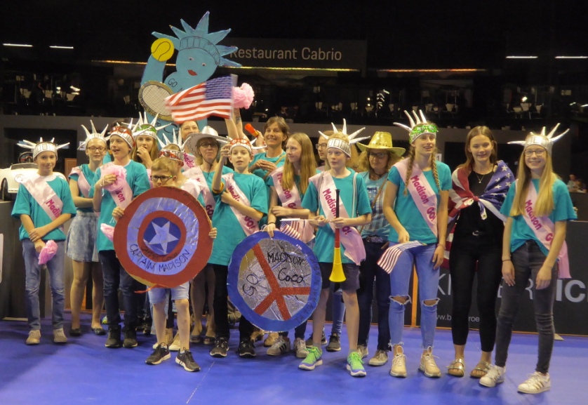 Kein Tennisverein in der Region Stuttgart hat in den vergangenen Jahren beim Porsche Tennis Grand Prix den Fanpreis für die beste Unterstützung einer Tennisspielerin so oft gewonnen wie unser Fan-Team vom TSV Waldenbuch . Obwohl Madison Keys, das All-American-Girl, positioniert an Rang 15 der Weltrangliste, früh ausschied, blieb unsere Truppe in starker Erinnerung! Die Jury wertete den optischen Auftritt und die kreative Unterstützung als preiswürdig und damit auf Rang 1. Die Prämie lässt sich sehen: 15 Freikarten für das Endspiel im nächsten Jahr.