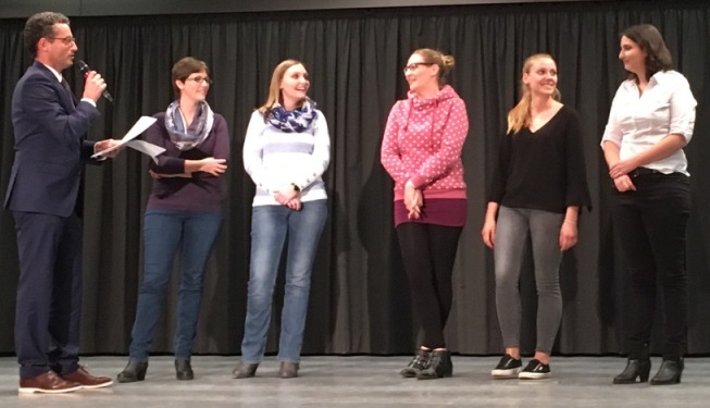 Glückwünsche von Bürgermeister Michael Lutz: die Tennis-Juniorinnen des TSV Foto: UD