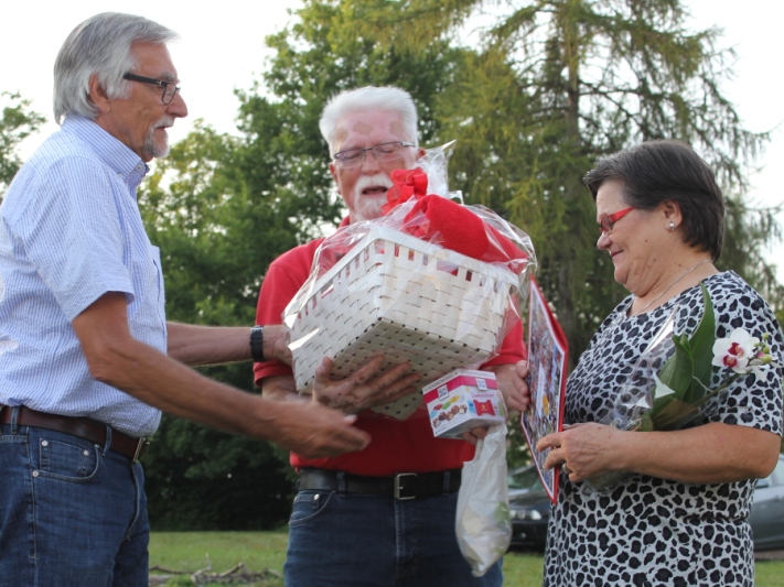 Abschiedspräsent: Abteilungsleiter Stephan Lehle (li.) mit den langjährigen “Matchpoint”-Pächtern Kata und Ante Gadze Foto: WH