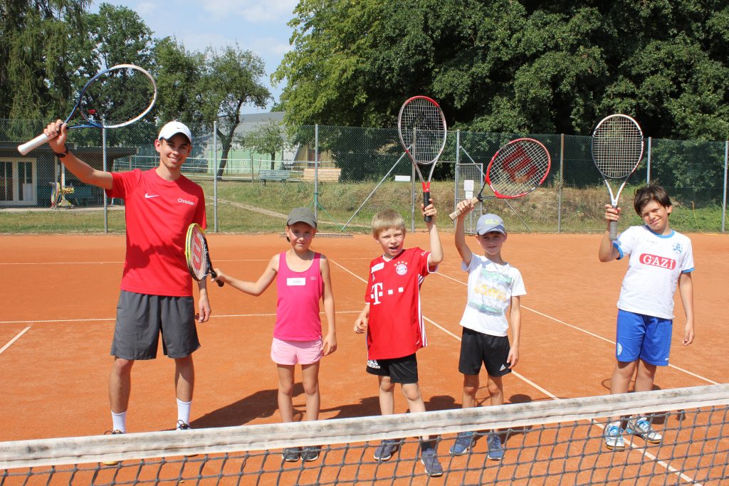 Sportwart Christian Behret (li.) mit den jungen Tennis-Schnupperern Foto: WH