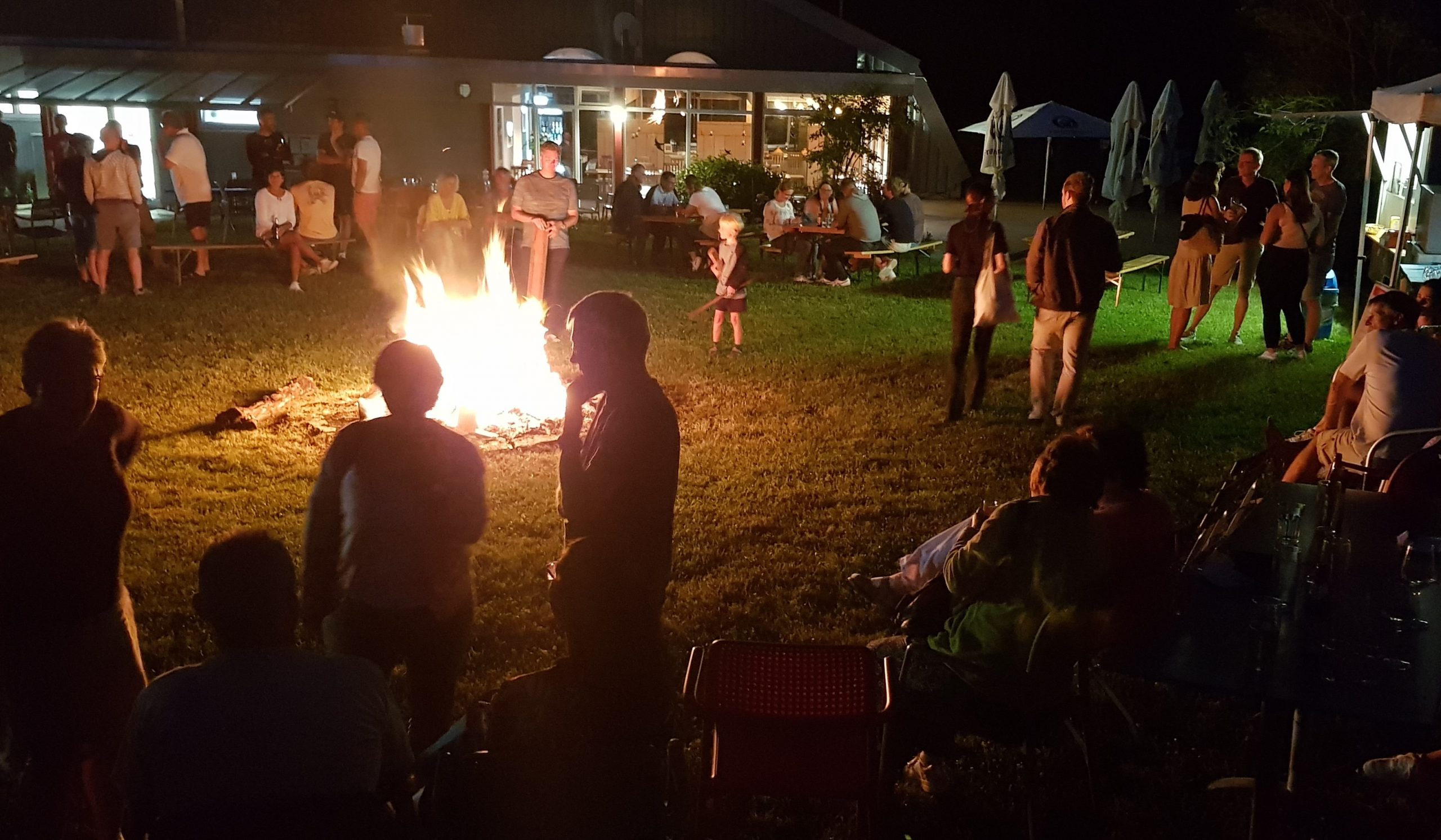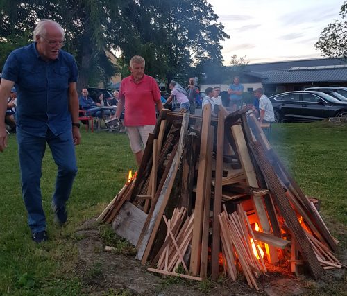 Waldenbuch und Steinenbronn waren am vergangenen Wochenende in Feierlaune – eine Veranstaltung löste praktisch die andere ab. Wir hätten das vielfältige Programm gerne etwas entzerrt und hatten unsere beliebte Sonnwendfeier deshalb für Freitagabend (24. Juni) geplant. Das Regenwetter hat das jedoch verhindert und uns kurzfristig zur Verschiebung um einen Tag gezwungen. Nach dem Motto: aufgeschoben ist nicht aufgehoben, trafen sich die feierfreudigen Tennisfreundinnen und Tennisfreunde am Samstag bei deutlich besserem Wetter auf dem Hasenhof zur Sonnwendfeier 2022. Von unserem Tennis-Abteilungsleiter Gerd Neff begrüßt, stimmten sich die Gäste mit kühlen Getränken und warmen Speisen auf das große Sonnwendfeuer am Abend ein, für das Bodo Knüppel und Eugen Waidelich sorgten.