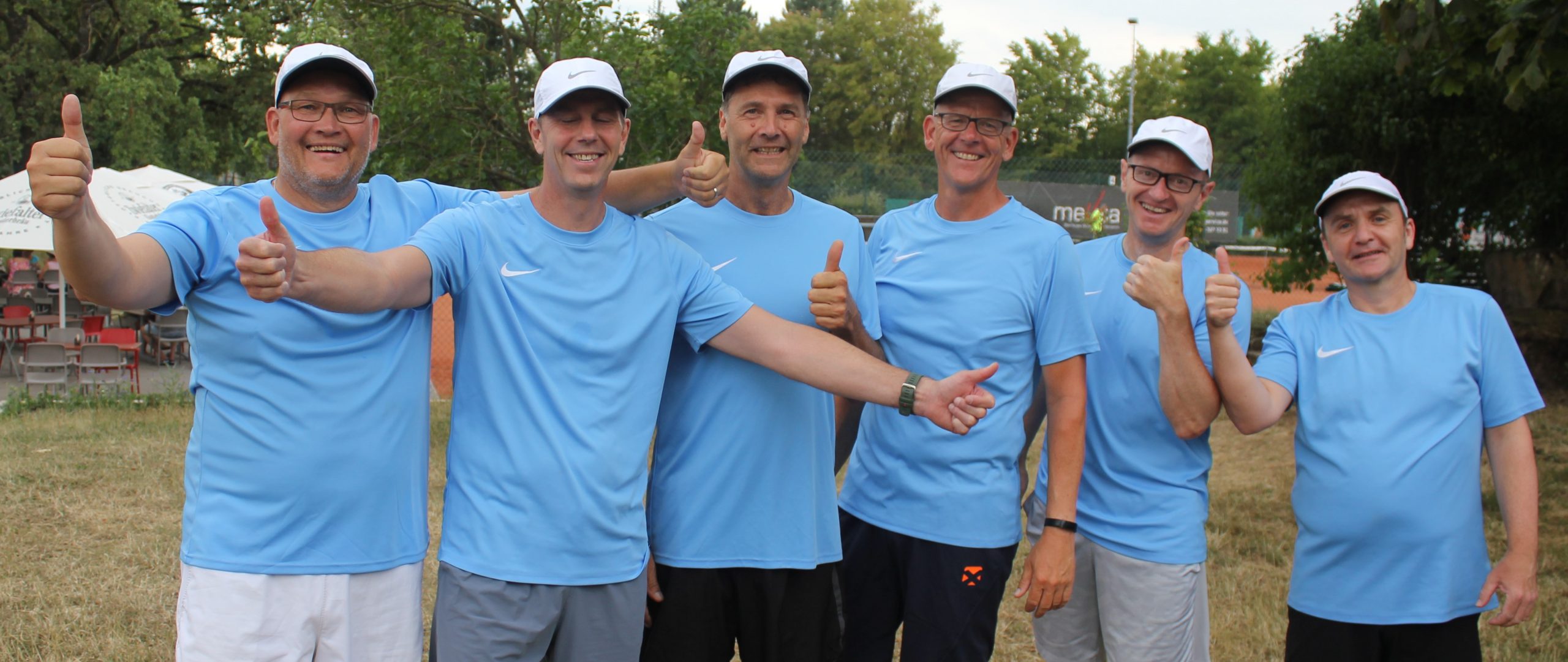 Die Herren 50/1 des TSV Waldenbuch grüßen als Aufsteiger in die Württembergliga! Nach dem souveränen 9:0-Sieg im vorletzten Oberliga-Saisonspiel gegen den TC Friedrichshafen firmiert das Saison -Finale mit dem Heimspiel gegen den TC Weil im Schönbuch am 22. Juli 2023 (Spielbeginn ist um 12:00 Uhr) unter dem Titel „Schaulaufen“. Gegen Friedrichshafen räumten Frank Deinaß, Franz-Peter Stümper, Markus Thomas, Uli Schmidt, Gregor Warneke und Volker Deinaß durch ihre Siege in den sechs Einzeln schon die allerletzten Zweifel am Sprung in die nächsthöhere Spielklasse aus dem Weg. Die Doppel waren danach bedeutungslos, so dass genügend Zeit blieb zur Aufstiegsfeier auf der Terrasse der Tennis-Gaststätte „Matchpoint – Dolce Vita“.
