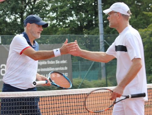 Die 11. Ausgabe der Waldenbuch Open geht in die Geschichte dieses beliebten Tennisturniers für Seniorinnen und Senioren ein als das Event, bei dem Regenwetter vom ersten bis zum letzten Turniertag den Spielplan kontaminierte. „So eine Turnierwoche habe ich hier noch nicht erlebt“, kommentierte Organisator Volker Deinaß die Wetterunbilden. „Der Dienstag ging noch einigermaßen, der Mittwoch war schon schlechter, der Donnerstag war ganz schlecht, da habe ich gedacht: schlimmer geht es nicht. Am Freitag war es dann aber noch schlimmer. Am Samstag haben wir in vier Hallen angefangen, dann wurde das Wetter besser, am Ende mussten wir mit einem Match wieder in die Halle umziehen.“ Da mochte der Sonntag, an dem die Endspiele auf dem Programm standen, nicht aus der Reihe tanzen: Erneut stoppte zunächst Regen die Aktivitäten der Spielerinnen und Spieler, erst nach der wetterbedingten Verzögerung konnten in den Finals die Turniersieger ermittelt werden.