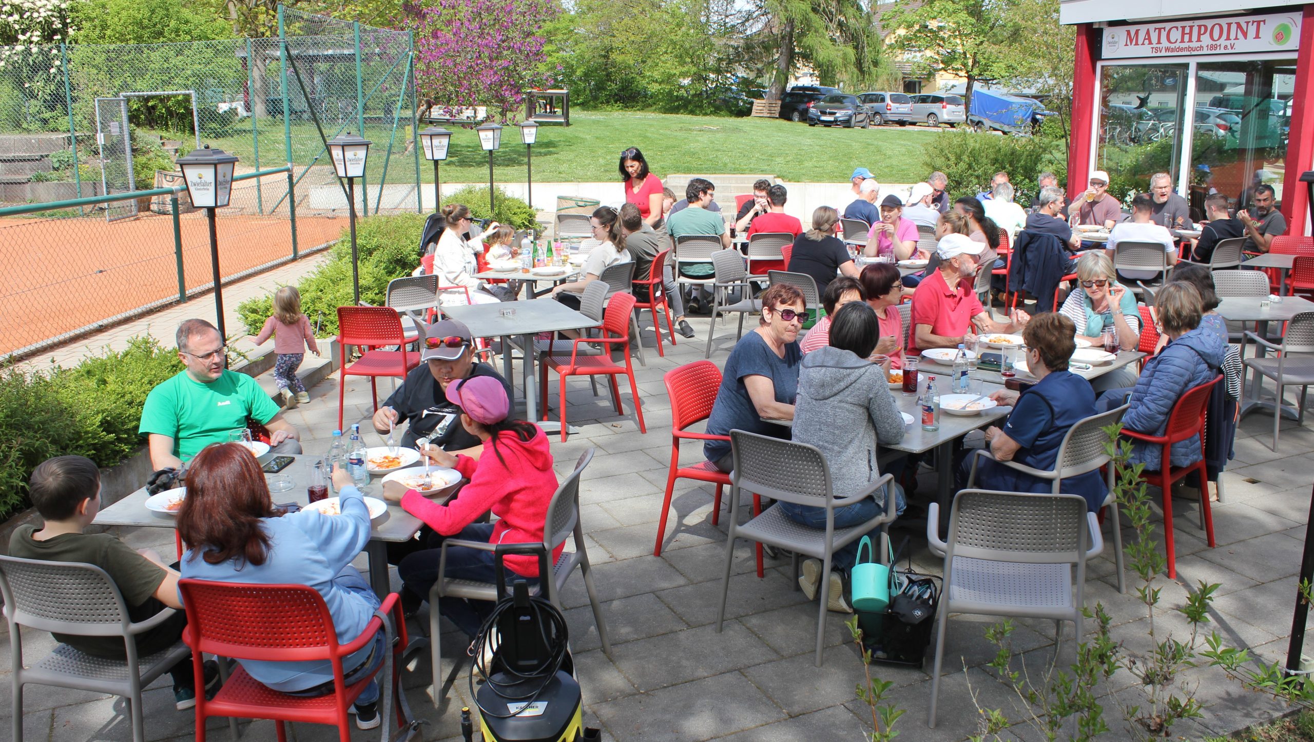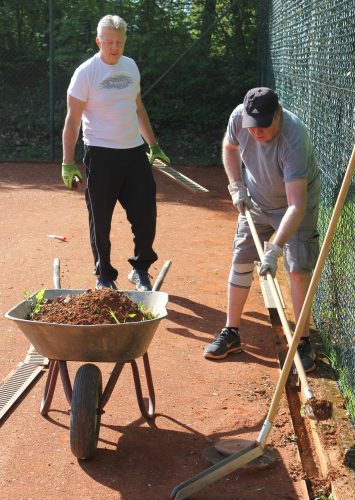 Die aufwendige Pflege der Grünanlagen und Fußwege, das Anbringen der Sichtblenden an den Tennisplätzen, das Reinigen und Aufstellen der Sitzbänke für die zehn Außenplätze und für die Zuschauerbereiche, die Reinigung der Wasserabläufe an den Rändern der Plätze und letztlich der Abtransport der Gartenabfälle und sonstigen Abfalls – all das ließ sich durch das Engagement der Tennisfreundinnen und Tennisfreunde, denen Abteilungsleiter Gerd Neff für ihre Unterstützung dankte, an einem Vormittag bewältigen. Einen Beitrag zum Warm Up leistete auch das frühsommerliche Wetter. Dank Sonnenschein und angenehmer Temperaturen ging nicht nur die Arbeit leichter von der Hand, die Helferinnen und Helfer konnten anschließend auch das Pasta-Essen und die erfrischenden Getränke auf der Terrasse des „Matchpoint – Dolce Vita“ in geselliger Runde genießen.