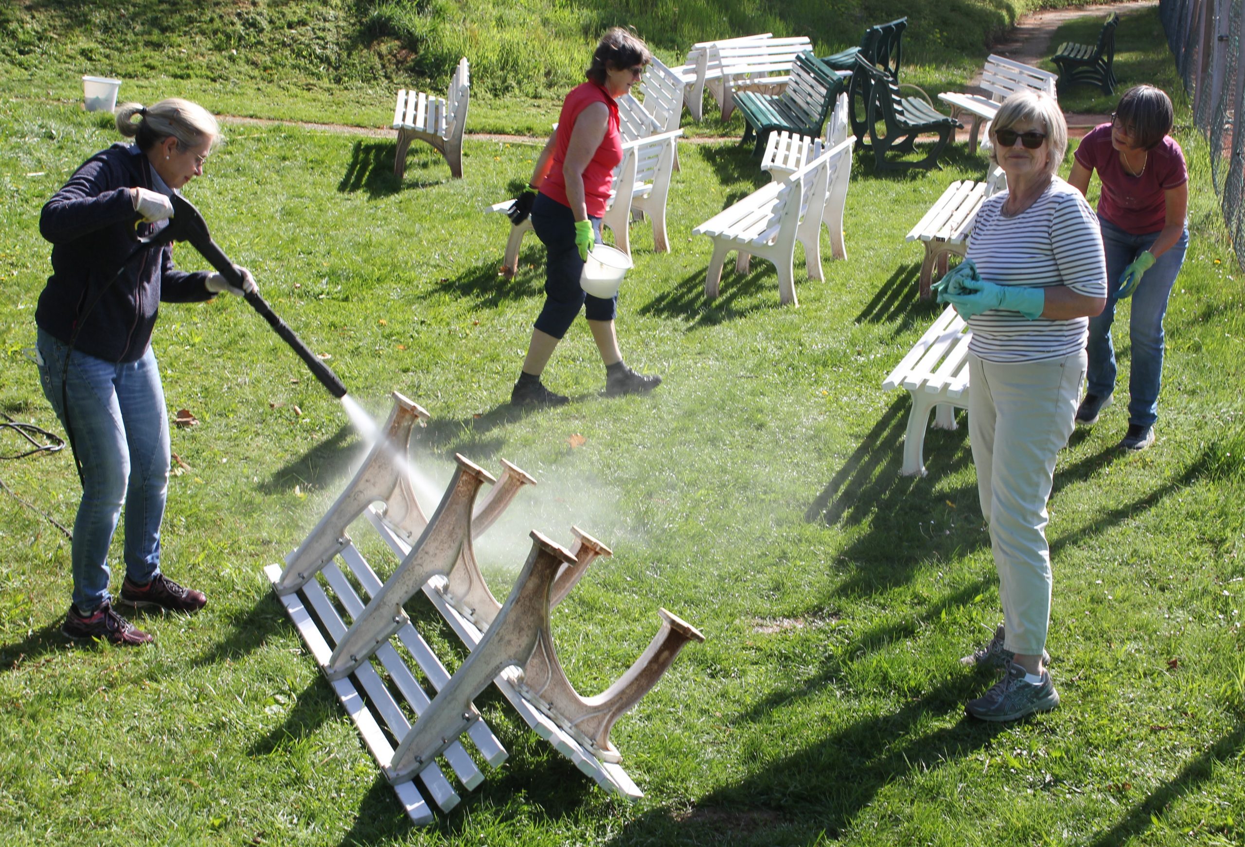 Alle Jahre wieder: Die Sitzbänke müssen mit einem Hochdruckreiniger bearbeitet werden Fotos: WH