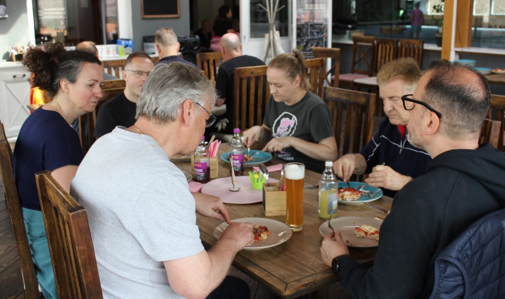 Nach getaner Arbeit schmeckt es besonders gut: Pizza und Getränke für die ehrenamtlichen Helferinnen und Helfer im “Matchpoint – Dolce Vita”