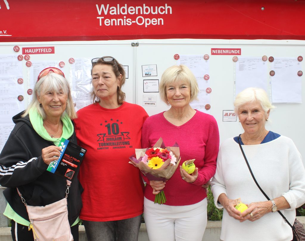 Siegerehrung im Wettbewerb der Damen 70: Turniersiegerin Jana Schuster (2. von rechts), Roselinde Böhringer (rechts, Platz 2) und Monika Schlegel (links, Platz 3) mit Ursel Deinaß,