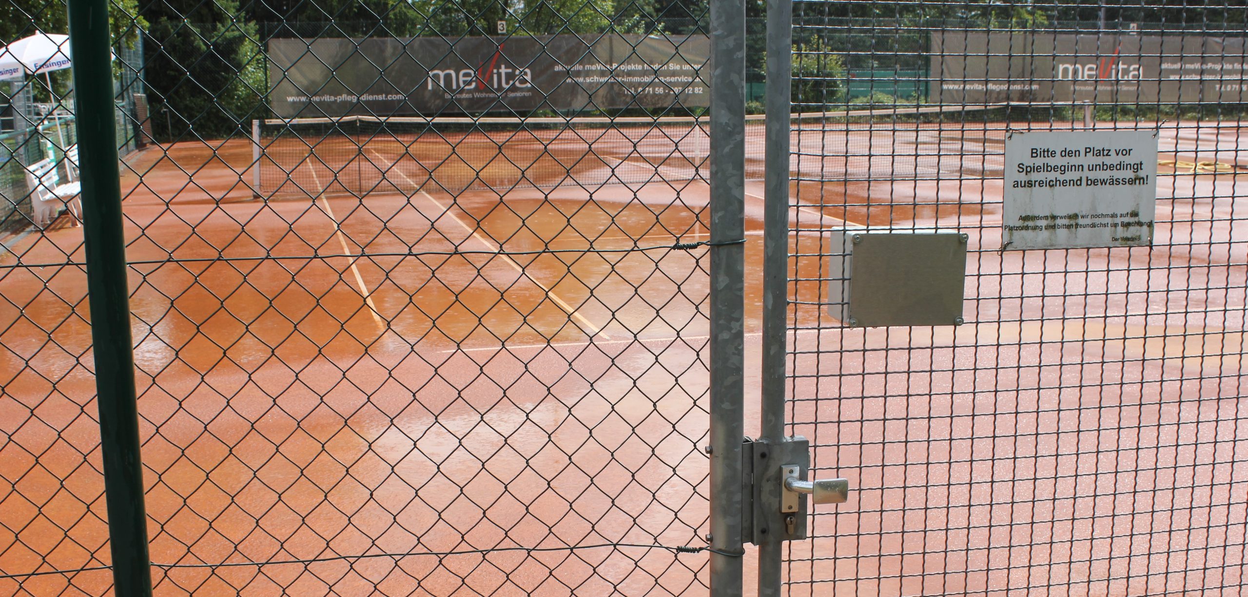 Überflutete Tennisplätze – oder: Zuviel Wasser ist auch nicht gut. Der Regen war der Störfaktor an den Turniertagen der 13. Waldenbuch Open