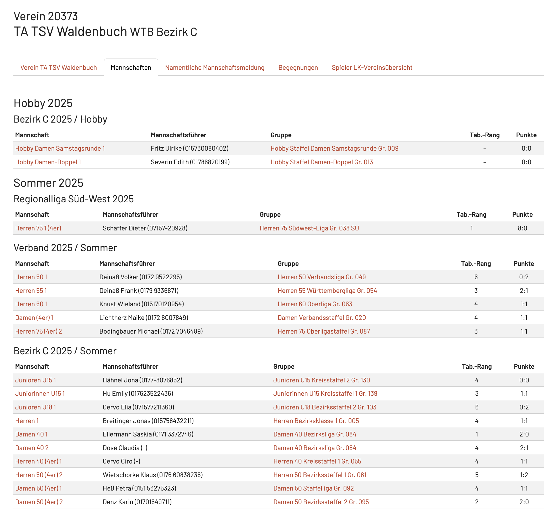 Das betrifft insbesondere die Nutzung der Außenanlage. Es muss sichergestellt werden, dass auch bei Veranstaltungen, die nicht alle Mitglieder ansprechen, stets im Minimum 4 Plätze zur freien Verfügung stehen (Ausnahme sind hier die Waldenbuch-Open im Sommer, hier können keine Plätze garantiert werden).