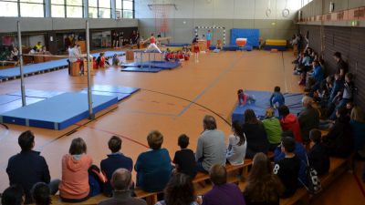 Von den jüngsten Turnkindern Jahrgang 2007 bis zu den „Großen“ Mädels waren alle Jahrgänge vertreten. Gewählt werden konnte zwischen einem 2-, 3- und 4-Kampf. Neben den klassischen Geräten Sprung, Reck, Balken und Boden zeigte die Jungsgruppe von Fabi außerdem Übungen am Barren und an den Ringen.