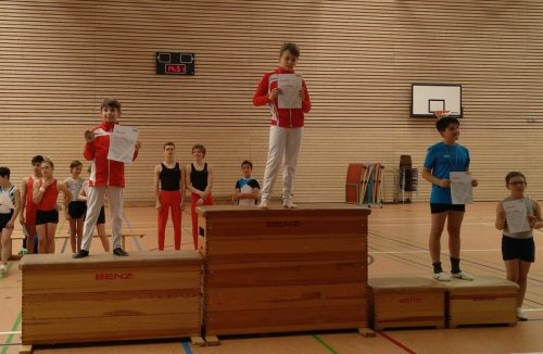 Für die fünf weiterqualifizierten Jungs ging es darum, die guten Plätze von den Bezirksmeisterschaften zu verteidigen. Außerdem war das Ziel, dass sich die Turner im Pflichtwettkampf für das Bezirksfinale weiterqualifizieren. Im ersten Durchgang schaffte es Noah Cottone mit einem dritten Platz. Leider knapp schied Leopold Schneider mit einem sechsten Platz aus. Im zweiten Durchgang schafften Noah Schulz und Jedidja Frank ihre beiden Treppenplätze im Wahl-3-Kampf zu verteidigen. Noah darf sich über den Titel des Gaumeisters und Jedidja über den Vizemeistertitel freuen. Nach einem sehr überzeugenden und mit vielen hohen Übungen begonnenen Wettkampf verletzte sich Quentin Lehner leider beim Einturnen am Boden und konnte nicht mehr seinen Wettkampf voll zuende turnen und wurde am Ende vierter. Für Noah C. Und Quentin geht es am 13.Mai um die Qualifikation für das Landesfinale.