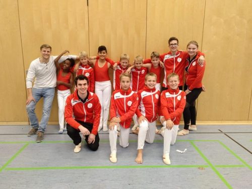 Am Samstag (29.9.) waren die Mädchen der Altersklasse 8 und 9 Jahre mit 5 Teilnehmerinnen am Start. Zusätzlich wurden sie von zwei Gruppenmitgliedern angefeuert und unterstützt. Nach 15 Minuten Einturnen startete der Wettkampf um 12 Uhr Mittags. Nach circa 3,5 Stunden Wettkampf und nach einer kleinen Pause liefen die Turnerinnen zur Siegerehrung ein. Am Ende erreichten Samira Bühl, Marie Gerner, Lena Langer, Laetitia Leib und Alix Zoller mit 152,35 Punkten den 11. Platz. Herzlichen Glückwunsch!