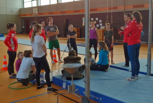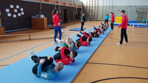 Am Samstag 15. Februar trafen sich die Übungsleiter der Turnabteilung zur diesjährigen internen Fortbildung, um ihr Wissen rund ums Gerätturnen aufzufrischen und nützlichen Input für ihr Training zu sammeln. Neben allgemeinen Themen wie Aufwärmen, Dehnen, Krafttraining und Hilfestellung wurde der Schwerpunkt auf die Grundpositionen im Turnen gelegt. Als Einleitung wurden wichtige Fragestellungen zum Thema „Pflichten und Rechte eines Übungsleiters“ kritisch diskutiert. Anschließend wurden methodische Prinzipien besprochen und im Folgenden an den Geräten Boden und Reck in die Praxis umgesetzt. Dank fleißiger Teilnahme und regem Austausch konnten alle Beteiligten neue Ideen und Erkenntnisse für ihr Training sammeln und starten mit großer Motivation in die kommenden Trainingsstunden.