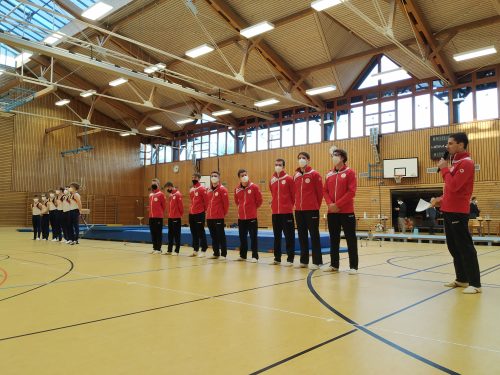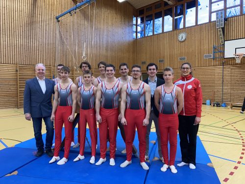 Neben den „alten Hasen“ Jan Landenberger, Michael Münster, Marcel Schiebenes, Steffen Wuhrer und den schon erprobten Liga-Turnern Quentin Lehner, Chris Lötterle und Noah Cottone, gingen zum ersten Mal auch die Turner Sebastian Heim und Moritz Jung an den Start. Mit dem jungen Nachwuchsturner Moritz Jung bekam die Mannschaft Unterstützung am Boden. Durch Sebastian Heim wurde die Wartezeit auf seinen Wettkampf-Einsatz in der Liga, der seit der frühzeitig abgebrochenen Saison 2020 noch ausstand, beendet. Außerdem war es auch sein erster geturnte Sechskampf in der Liga! Bei den „alten Hasen“ sind mit Steffen Wuhrer und Michael Münster mittlerweile zwei Papas in der Mannschaft vertreten. Und mit den neuen Trainern Monika Teuber und Marcel Schiebenes tritt die Waldenbucher Mannschaft zum ersten Mal eine Liga-Saison an.