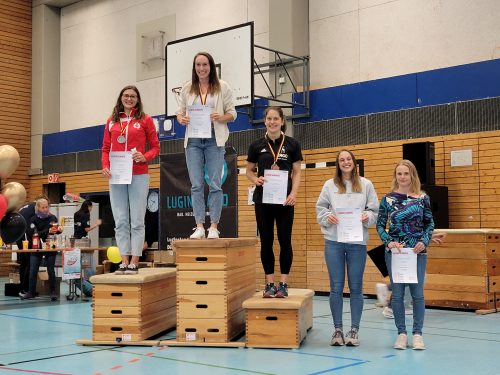 Mit Marcel Schiebenes, Michael Münster und Fabian Teuber bildete der TSV Waldenbuch ein Drittel des Teilnehmerfeldes der Senioren, die sich aus ganz Deutschland dazu qualifiziert hatten – eine starke Präsenz! Monika Teuber ging bei den Seniorinnen als Waldenbucher Turnerin an den Start. Nach dem Ertönen der Nationalhymne wurde der Wettkampf in der Turnhalle eröffnet. Es galt am Barren, Boden und Sprung fehlerfreie Übungen zu absolvieren, um sich in eine gute Ausgangslage zu bringen. Hier machte Monika mit ihrer Boden-Kür, die mit der Tageshöchstwertung in ihrer Altersklasse bewertet wurde, direkt eine Ansage. Weiter ging es in der Leichtathletik mit den Disziplinen Sprint, Weitsprung und Kugelstoßen. Hier stoß Marcel mit der 7,26 kg schweren Kugel eine neue persönliche Bestweite von 9,82 Metern. Zum Schluss fanden sich alle im Hallenbad ein, wo im Kunstspringen zwei Sprünge beliebig vom 1m- oder 3m-Brett gezeigt werden müssen und auf Zeit 25m getaucht und 100m geschwommen werden muss. Fabian konnte sich mit seinen sauberen Sprüngen vom 1m-Brett – eineinhalb Salto vorwärts gehechtet und Salto rückwärts gestreckt – um gute 2 Punkte steigern im Vergleich zum Qualifikationswettkampf. Michael gelang es seine Qualifikationszeit über 100m Freistil um 2 Sekunden zu verbessern und schlug nur ein Hundertstel hinter dem schnellsten Schwimmer an. Am Ende eines langen Wettkampftages konnten sich alle Waldenbucher Teilnehmende im Vergleich zu ihrer Qualifikationspunktzahl nochmals steigern. Im starken Teilnehmerfeld der Senioren belegte Marcel den 9. Platz, Michael den 7. Platz und Fabian den 6. Platz. Monika schaffte den Sprung sogar auf das Treppchen und wurde deutsche Vizemeisterin. Ein großes Dankeschön gilt den Helfenden und Betreuenden Sebastian Heim, Johannes Gross, Manuel Di Stefano, Steffen Weinstein und Sabine Teuber.