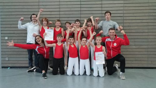 Nach einem langen Wettkampftag waren die Turner, Kampfrichter und Trainer:innen müde aber auch glücklich über die gezeigte Leistung.