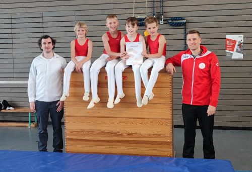 In der E-Jugend erturnten Simon, Benni, Mattis und Chris durchwegs motiviert und fokussiert bei einem Vierkampf einen tollen 10. Platz unter 14 Mannschaften.