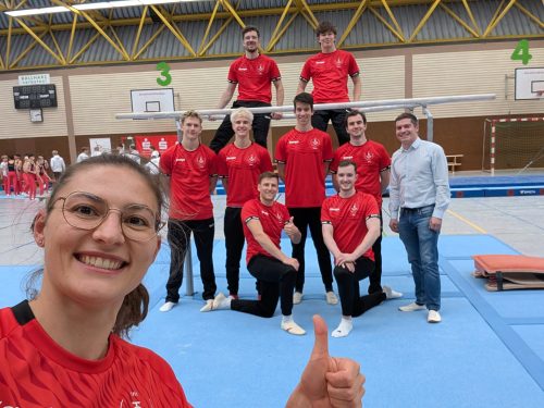 Am vergangenen Samstag ging es für den vorwiegend jüngeren Teil des männlichen Liga-Teams zum Landesfinale nach Öhringen. Insgesamt 8 Waldenbucher Turner traten im Team gegen Mannschaften mit teilweise Oberliga-Niveau an und schlugen sich erfolgreich: Basti, Moritz, Leopold, Manuel, Dominik, Chris, Steini und Fabi.